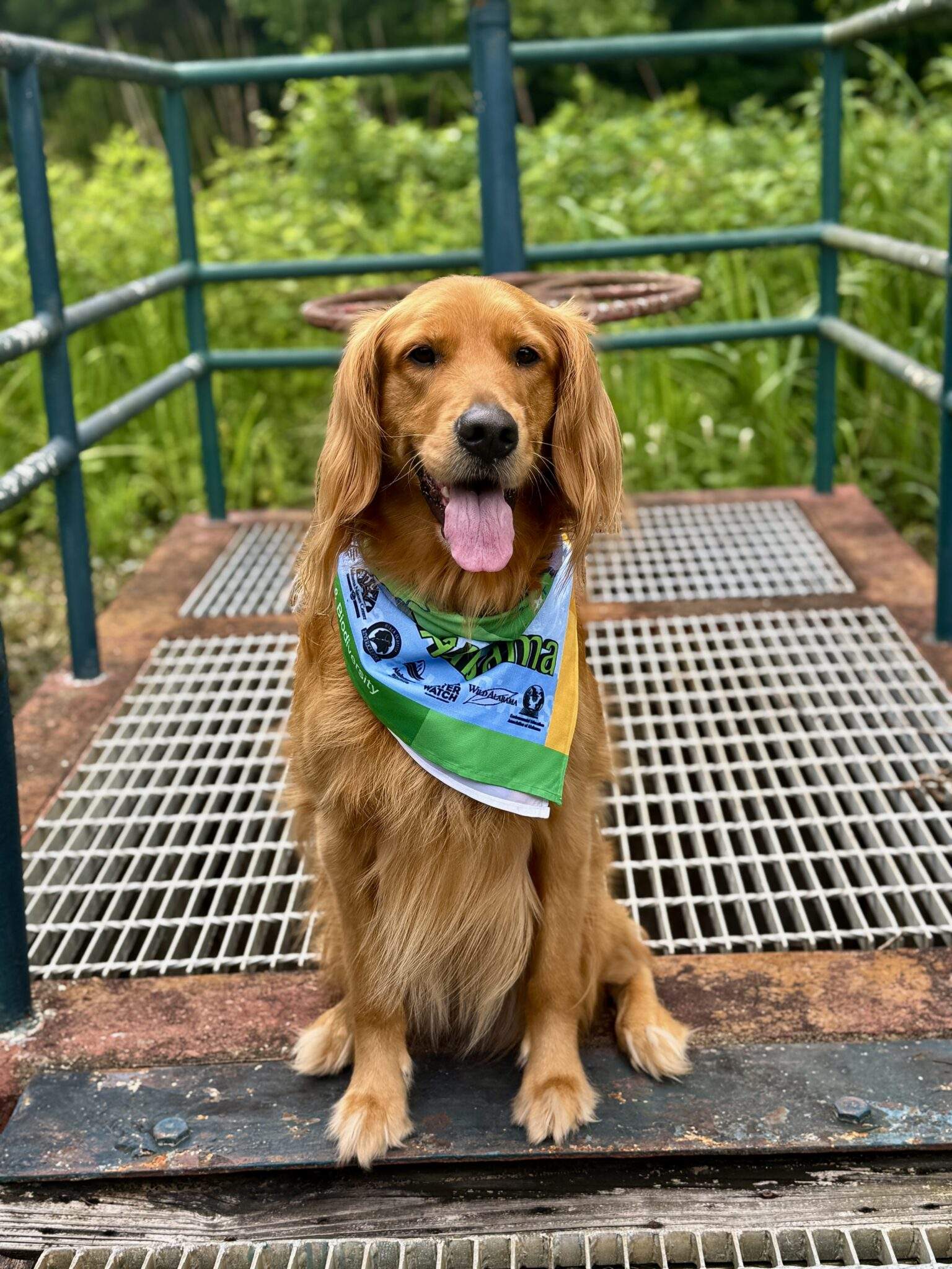 When she’s not hard at work monitoring the wetlands, Panda can be found lounging belly-up in the office, splashing at Wheeler Lake, or begging politely for snacks from anyone who passes by.